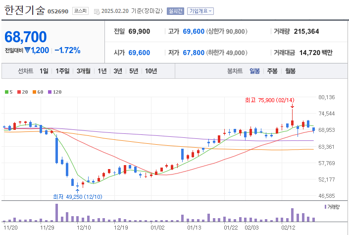 기업 개요 한전기술은 원자력 및 수력 발전소 설계를 전문으로 하는 기업으로, 원전 해체 기술 개발 및 종합 설계 분야에서 강점을 가지고 있습니다. SMR(소형모듈원자로) 및 핵융합 연구에도 투자하고 있어 미래 원전 관련 산업의 핵심 기업으로 평가됩니다.