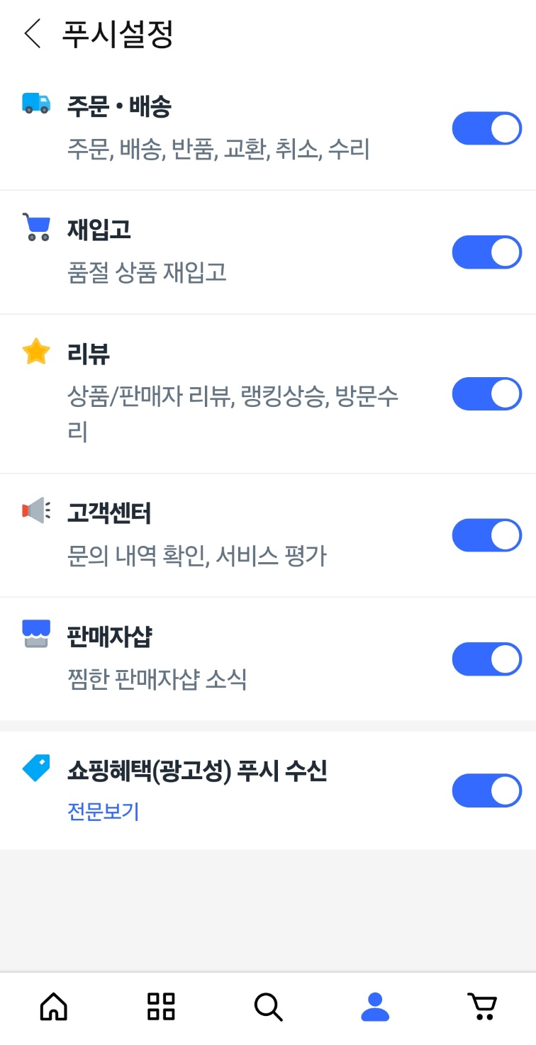 쿠팡앱에서-내정보관리-푸시설정- 알람켜기/ 내핸드폰-설정-앱에서 쿠팡 알람 허용