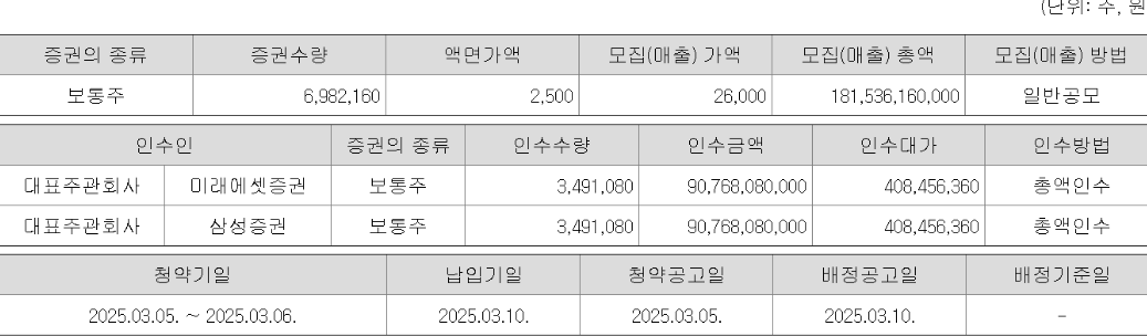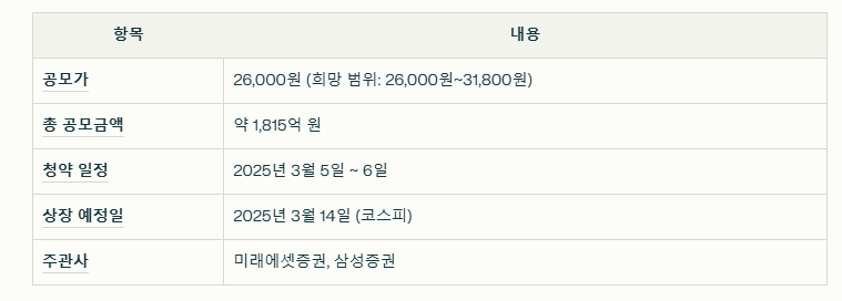 - 상장 예정일: 2025년 3월 14일 (코스피)