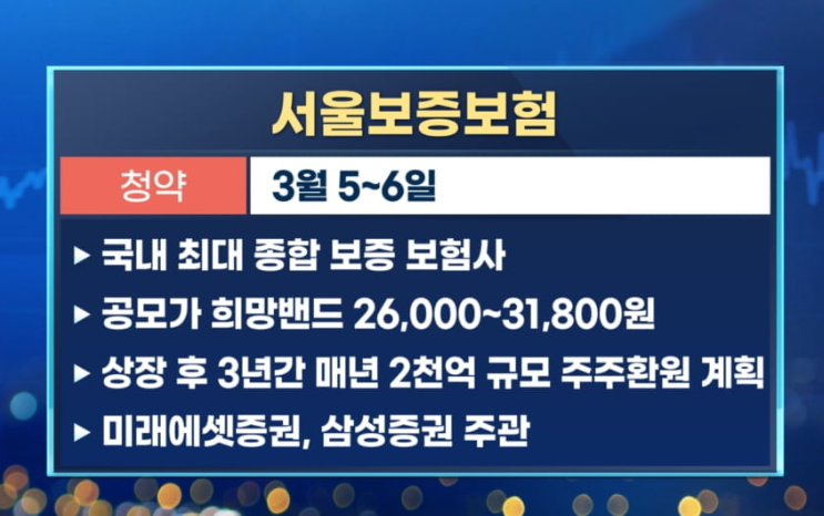 오늘은 3월 5일~6일 청약이 진행되는 서울보증보험의 공모주 관련 정보를 알기 쉽게 정리해보려고 합니다. 투자를 고민하시는 분들께 도움이 되길 바랍니다.