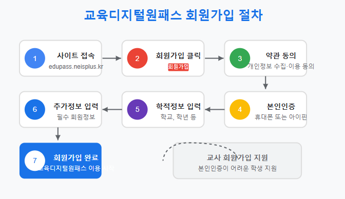 교육디지털원패스를 이용하기 위한 회원가입 절차는 다음과 같습니다: