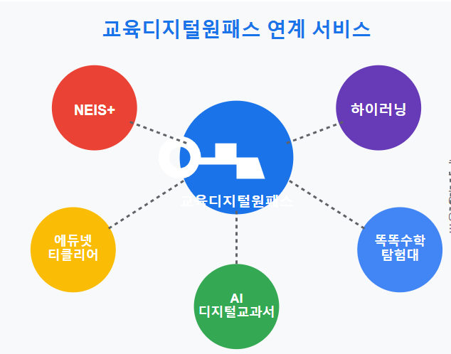 교육디지털원패스는 학생과 교직원이 하나의 ID로 다양한 교육 관련 서비스를 편리하게 이용할 수 있도록 지원하는 통합 인증 시스템입니다. 과거에는 교육 관련 사이트마다 별도의 계정을 만들고 각각 로그인해야 했던 불편함이 있었는데요, 이제는 교육디지털원패스 하나로 여러 교육 플랫폼을 쉽게 이용할 수 있게 되었습니다.
