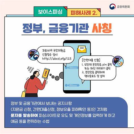- 수법: 카드사 공식 고객센터 전화번호를 위조하여 발신번호로 표시하고, 고객의 개인정보를 탈취합니다. 문자나 전화로 신용카드 발급 여부를 묻고, 주민등록번호 등을 요구합니다.
