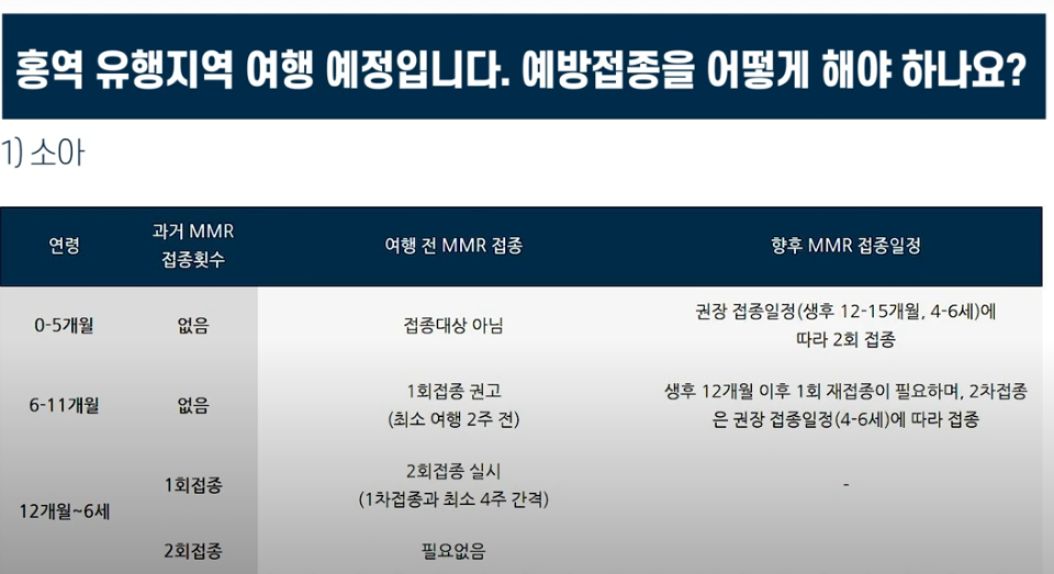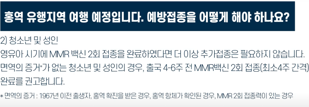- 국제 여행자: 홍역 유행 지역 방문 전 면역 상태 확인