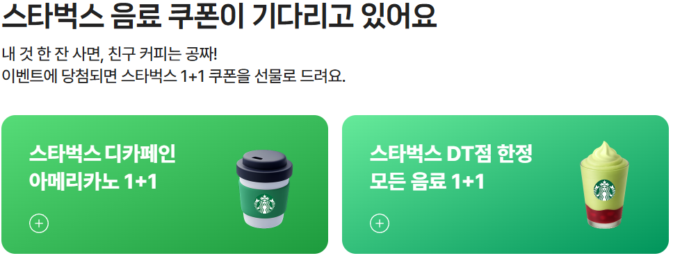 - 디카페인 아메리카노(톨) 1+1 쿠폰